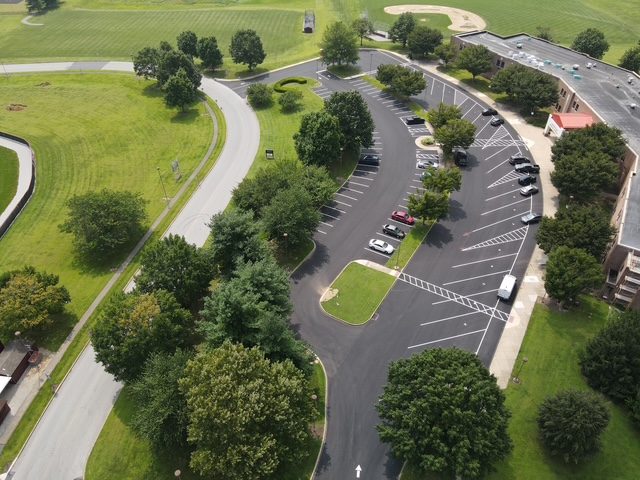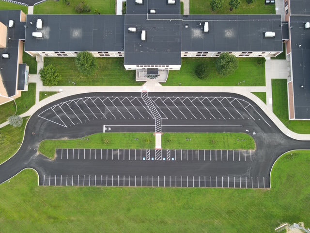 That’s where line striping came in. Clear, sharp markings were applied to direct traffic and organize parking—especially important for a high-traffic area like a school campus. Now, everyone knows where to park and how to navigate the space safely.