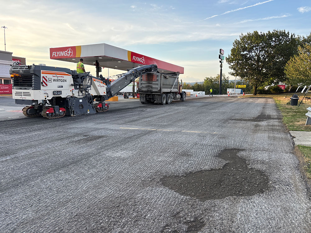 For this project, networking connections led Flying J’s management team to reach out after their parking lot had become a safety concern with deep potholes, standing water, and uneven areas creating hazards for both drivers and pedestrians.